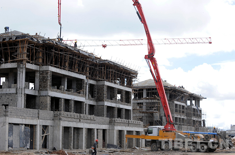 這是在藏北首府那曲鎮,由遼寧省援藏建設的遼寧小區正在施工(唐召明2012年8月7日攝)