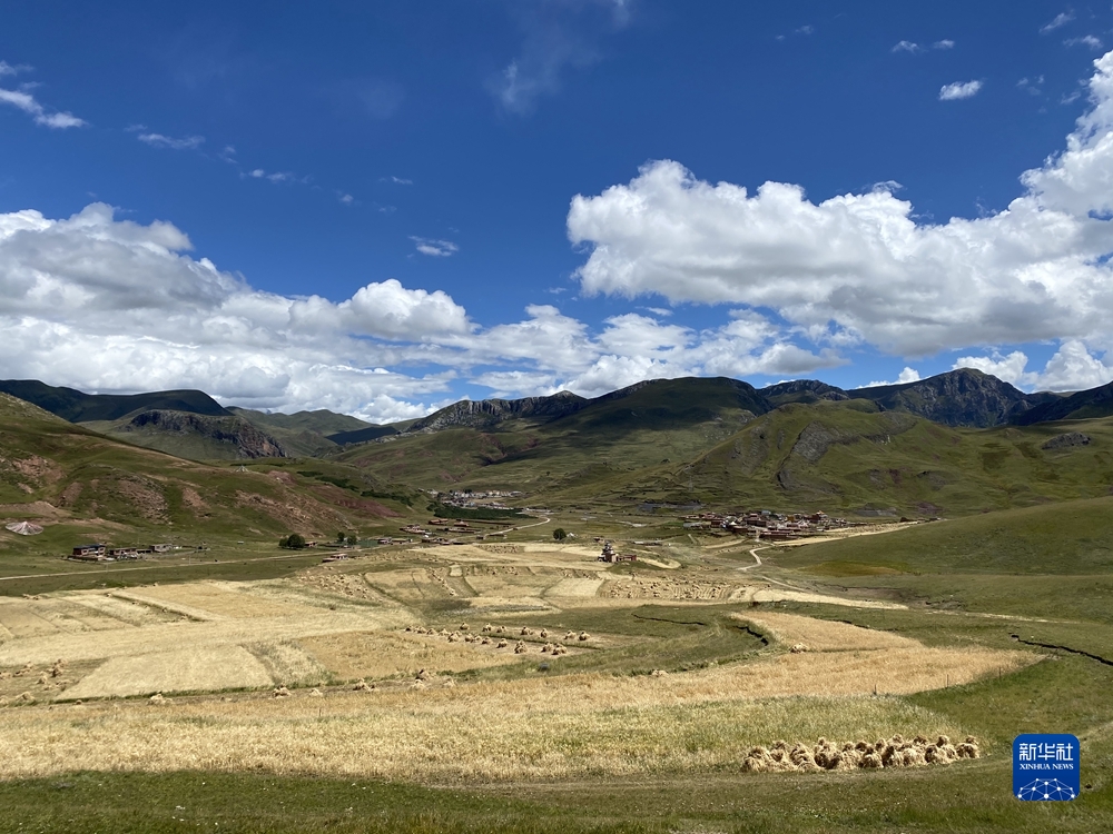 金秋時節,在青海省玉樹藏族自治州囊謙縣,黑青稞迎來豐收,在陽光的照射下,一望無際的田地里遍地金黃。望著往來穿梭的收割機,拉東才索南滿懷希望。