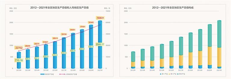 經(jīng)濟(jì)健康快速發(fā)展,地區(qū)生產(chǎn)總值由2012年的710.16億元增長(zhǎng)至2021年的2080.17億元。十年來(lái),西藏地區(qū)生產(chǎn)總值增長(zhǎng)了152.6%,年均增長(zhǎng)9.7%。