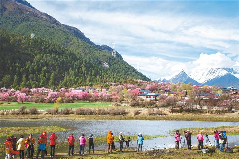 旅游業(yè)快速發(fā)展,全區(qū)旅游接待人數(shù)和旅游總收入分別由2012年的1058萬(wàn)人、126.47億元增加至2021年的4153萬(wàn)人、441.90億元。圖為2021年4月西藏自治區(qū)林芝市桃花節(jié)迎來(lái)國(guó)內(nèi)外游客。