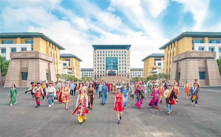 各族學(xué)生從新建成的西藏民族大學(xué)教學(xué)樓健步走出。