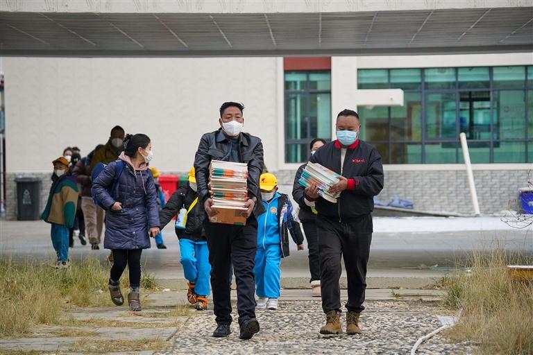 在拉薩市第八中學校門口,學生們滿懷希冀與欣喜,來到闊別已久的校園,校園內恢復了往日的熱鬧。學生們在家長的陪同下背著行囊,拖著行李箱回到各自寢室。衛生大掃除是必不可少,他們對床鋪和個人用品進行了整理。隨后,同學們有序完成了新書本的領取,感受著翻開書本泛出的陣陣墨香。與自己的姓名一起簽在書本扉頁的還有新學期的美好愿景。