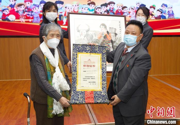 圖為活動當天知名畫家吳茜向中國藏學研究中心西藏文化博物館捐贈西藏主題作品。 中國藏學研究中心供圖