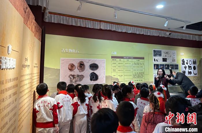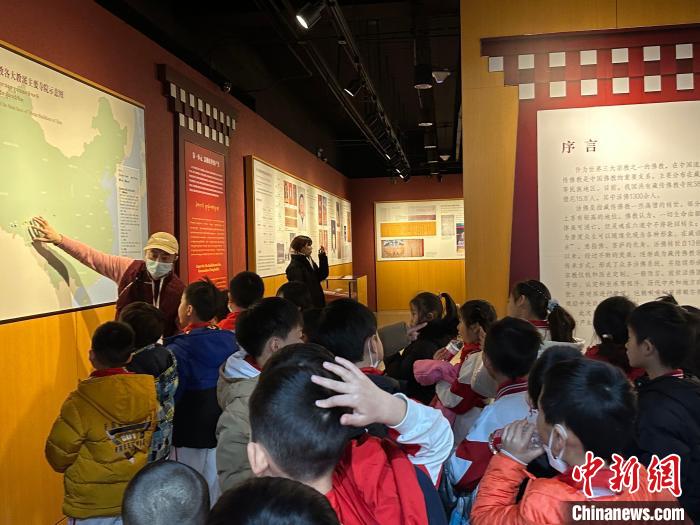 圖為活動當天西藏文化博物館的志愿者們帶領小朋友參觀館內展覽。 李晗雪 攝