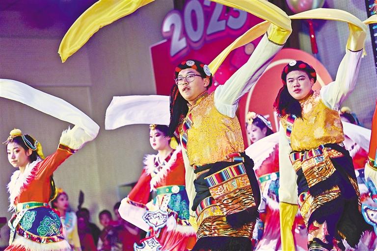 圖為學生在藏歷新年團拜活動上表演藏族舞蹈。 新華社記者 李一博 攝