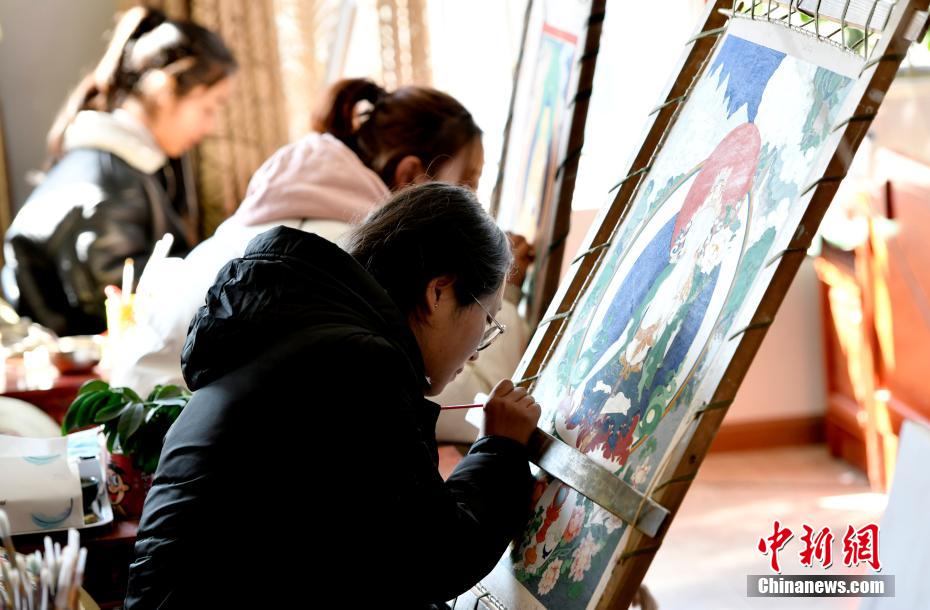 隨著經(jīng)濟(jì)社會(huì)的發(fā)展,在對(duì)非物質(zhì)文化遺產(chǎn)傳承越來越重視的背景下,也有了越來越多的西藏女性學(xué)習(xí)唐卡繪畫。她們?cè)趯?shí)現(xiàn)自己夢(mèng)想的同時(shí),也為民族文化的傳承與發(fā)展貢獻(xiàn)著“巾幗力量”。圖為3月8日,西藏唐卡畫院內(nèi)正在繪制唐卡的女學(xué)生。