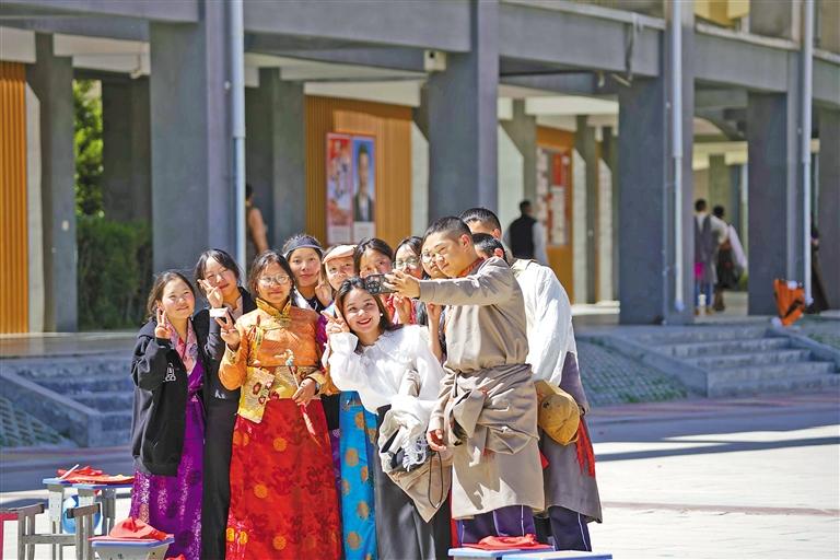 圖為學生們在一起自拍留念。 阿旺尼瑪 攝