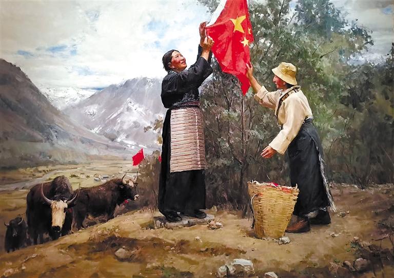 隨著一系列支持政策的持續(xù)推進(jìn)和西藏各族兒女的團(tuán)結(jié)奮斗,西藏的經(jīng)濟(jì)發(fā)展和民生水平都得到了大幅度提升。同時(shí),關(guān)注西藏發(fā)展現(xiàn)實(shí)、進(jìn)行美術(shù)創(chuàng)作的藝術(shù)家日漸增多,一件件優(yōu)秀美術(shù)作品應(yīng)運(yùn)而生,并且在全國重要展覽中精彩呈現(xiàn),向人們?nèi)妗⒘Ⅲw地展現(xiàn)了新時(shí)代西藏人民生活的美好圖景。2022年秋季在中國美術(shù)館展出的“第13屆中國藝術(shù)節(jié):全國優(yōu)秀美術(shù)作品展覽”中,有大量表現(xiàn)西藏民族風(fēng)情和民生發(fā)展題材的美術(shù)作品,從作品構(gòu)思到藝術(shù)表現(xiàn),體現(xiàn)出鮮明的民族文化特色和民生繁榮景象,展現(xiàn)出美術(shù)創(chuàng)作者深植心底的鑄牢中華民族共同體意識(shí)創(chuàng)作理念。
