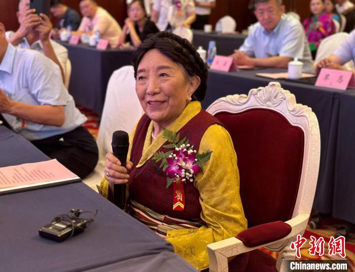 6月26日,紀錄片《唱支山歌給黨聽——才旦卓瑪藝術人生》在北京開機,86歲的才旦卓瑪來到開機儀式現場,向各方對西藏文化事業的關心表示感謝。 中新社記者 李晗雪 攝