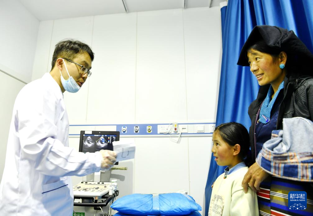 7月23日,南京醫科大學附屬兒童醫院心臟中心主任莫緒明(右)在墨竹工卡縣為兒童體檢。新華社記者 張汝鋒 攝