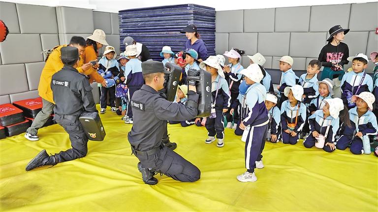 日前,山南市公安局第五黨支部聯合乃東區瓊嘎頂社區舉辦以“金色童年 警民共建”為主題的警營開放日活動,邀請瓊嘎頂社區共駐共建單位代表、社區工作人員、山南市第四實驗幼兒園師生等走進特警警營,體驗特警支隊民警的工作與生活。旨在進一步推進城市黨建引領基層治理工作,助力打造區域化黨建聯建綜合體建設,進一步構建和諧警民關系。