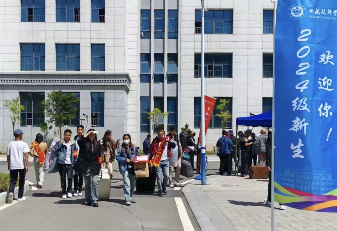 在西藏技師學(xué)院校園里,隨處可見“歡迎新同學(xué)”的標(biāo)語和展板,校園內(nèi)還設(shè)置了立體合影展臺供學(xué)生留影,營造出了濃濃的暖心氛圍。學(xué)生和家長們帶著大包小包的行李,秩序井然地進入校園,找到所錄取專業(yè)報到點前完成入學(xué)手續(xù),各班班主任都等候在報到點,耐心地回答學(xué)生們的疑問、專業(yè)學(xué)習(xí)情況、體檢和助學(xué)金的申請等問題。