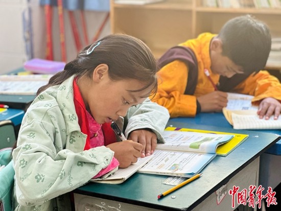 9月12日,四川省甘孜藏族自治州雅江縣呷拉鎮片區寄宿制學校,學生在寫作業。中青報·中青網記者 焦敏龍 攝