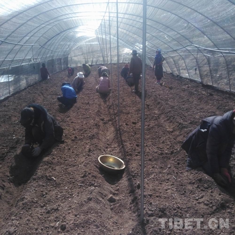 春風拂來,細柳抽芽,在西藏山南市瓊結縣下水鄉唐布齊村千畝連片綠色無公害蔬菜生產基地,成片保溫膜在夕陽下鱗次櫛比、熠熠生輝,溫室內,一片生機盎然的景象映入眼簾,自動噴淋系統正澆灌著萵筍苗,成排的西紅杮、二荊條、黃瓜、四季蘿卜等20多個品種蔬菜長勢喜人。