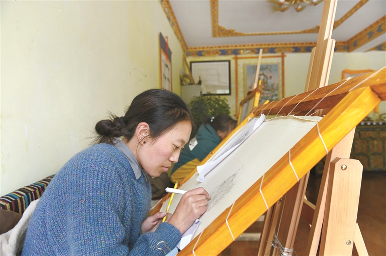 據了解,西藏雪堆白傳統手工藝術學校的學生中,有不少是貧困農牧民子女或殘疾人士等。畢業的學生或留校任教,或獨立創作,靠雙手脫貧增收致富。