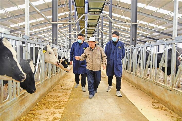 圖為近日,達孜區高標準良種奶牛養殖示范中心畜牧獸醫姜玉亮帶領新員工巡檢牛場。記者 李洲 攝
