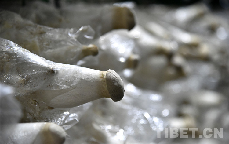 圖為日喀則市珠峰一見則喜生物科技示范園區(qū)培育生產(chǎn)的杏鮑菇 攝影:王媛媛