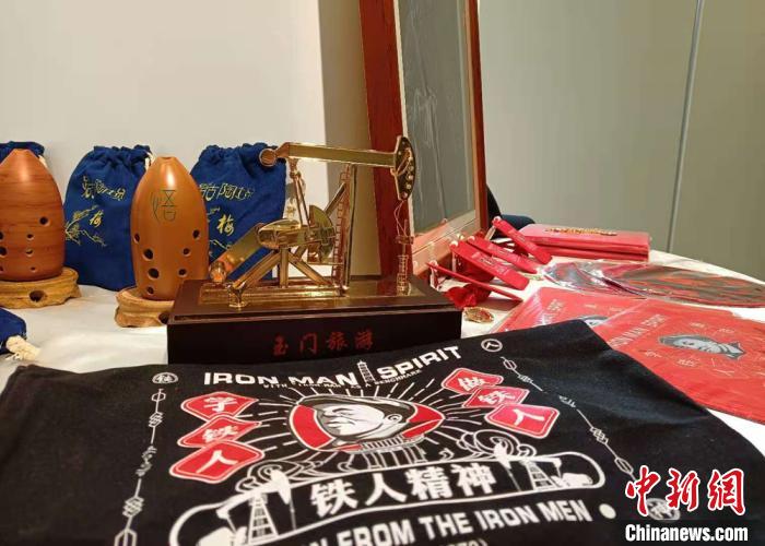 圖為“鐵人”王進喜故里甘肅玉門以“鐵人精神”制作的文創產品展示。 張婧 攝