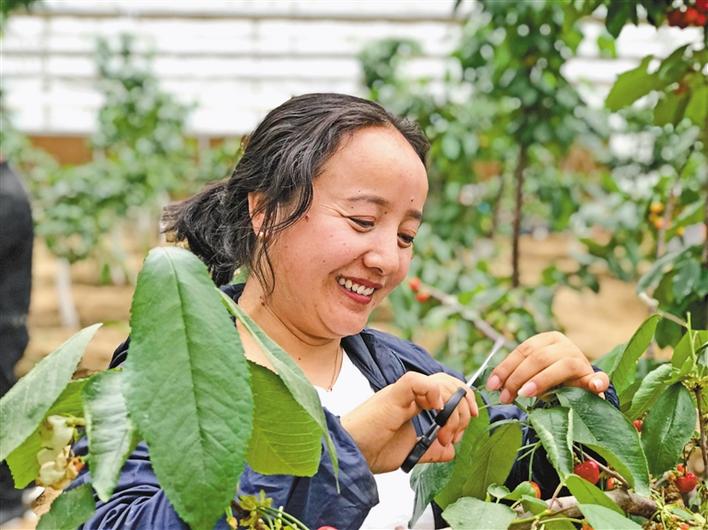 西藏拉薩市尼木縣現代農業產業園車厘子種植負責人德吉(縣自然資源局干部)和基地內其他6名“點對點”產業幫扶干部一起,“手把手”教授98戶建檔立卡貧困戶學習種植技術,實現車厘子、有機蔬菜種植產值100余萬元,帶動群眾585人次,兌現勞務分紅25萬元。既管了群眾“肚子”,又富了群眾“腦子”,還增進了民族團結。