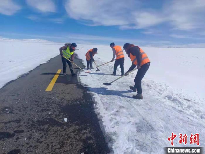 圖為西藏一線交通運輸部門組織護路員對農村公路開展除雪保暢。 西藏自治區交通運輸廳供圖