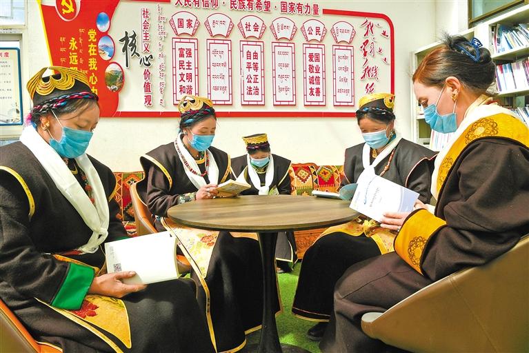 圖為林芝市工布江達縣金達鎮加龍村的群眾在農家書屋讀書。記者 王敏 攝