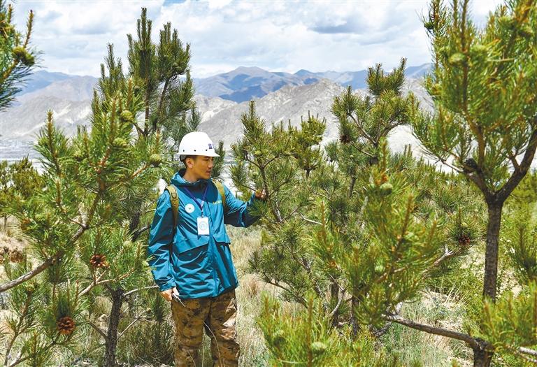 工程的綠意還延伸至拉薩貢嘎機場周邊的山體,山南市林草局林業和草原有害生物防治站檢疫員次仁羅布在造林現場進行苗木復檢工作,復檢結果顯示這批苗木的成活率達到92%。“這里是走出貢嘎機場的第一站,旅客們可以直接看到我們種下的綠色,很有意義。”次仁羅布說。