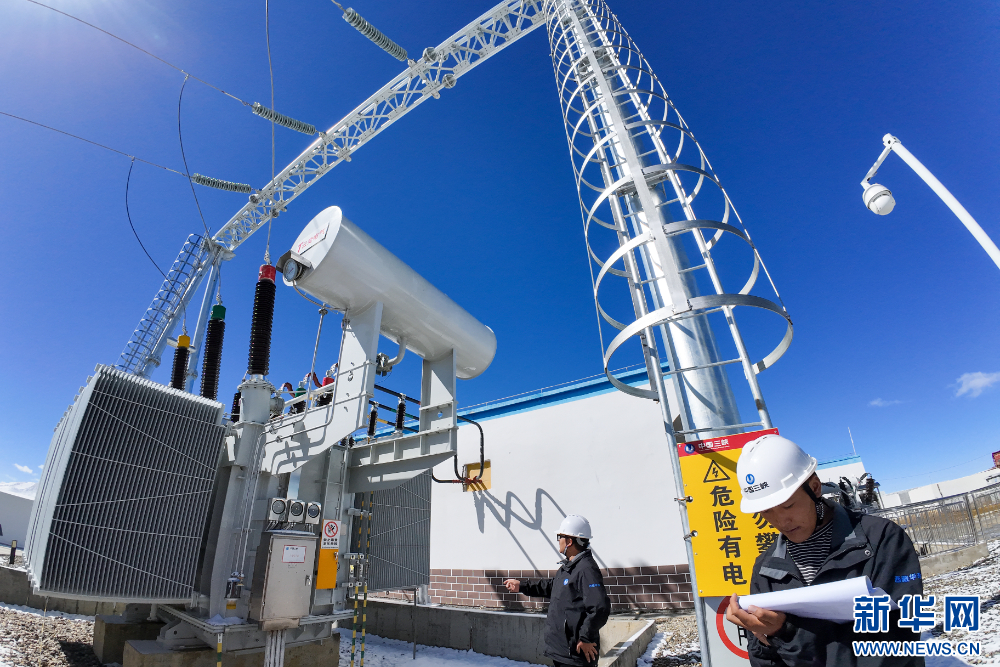 工作人員在110千伏協(xié)合措美縣20兆瓦M(jìn)W并網(wǎng)光伏電站進(jìn)行日常檢查。新華網(wǎng) 旦增努布 攝