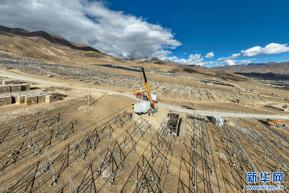 在建設(shè)中的110千伏協(xié)合措美縣20(MW)并網(wǎng)光伏電站項(xiàng)目(無(wú)人機(jī)照片)。新華網(wǎng) 旦增努布 攝