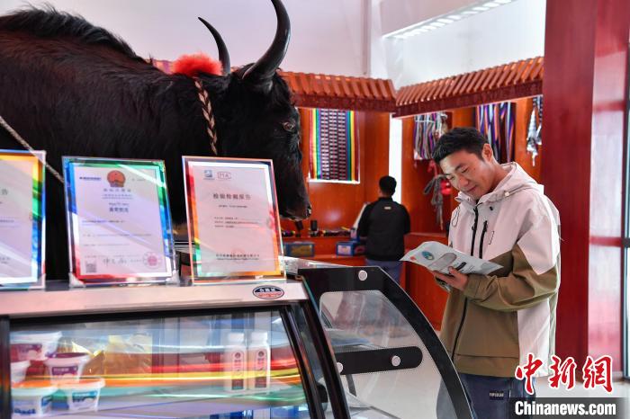 10月25日,西藏自治區那曲市聶榮縣,畜產品深加工產業正成為帶動牧民增收致富的新引擎。圖為游客參觀嘎確生態畜牧業發展有限責任公司產品展示區。中新社記者 貢嘎來松 攝