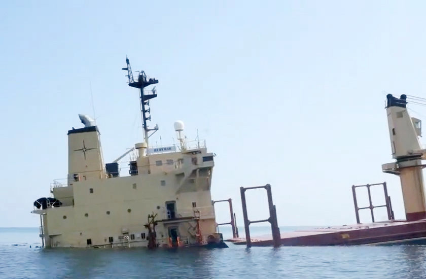 這張拍攝日期不明的照片顯示了英國貨輪“魯比馬爾”號沉沒前的景象。新華社發(也門政府供圖)