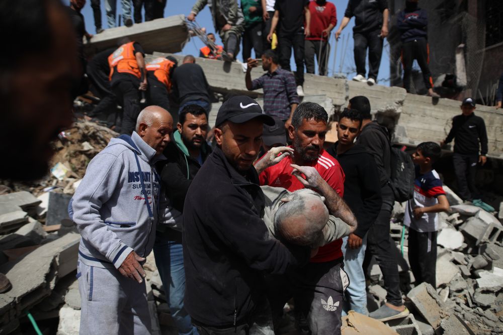 3月31日,在加沙地帶中部邁加齊難民營,人們在以軍空襲后開展救援。新華社發