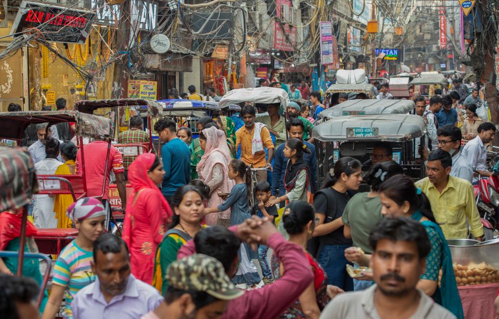 2023年4月26日,人們聚集在印度新德里的一處市場。新華社發(fā)(賈韋德·達爾攝)