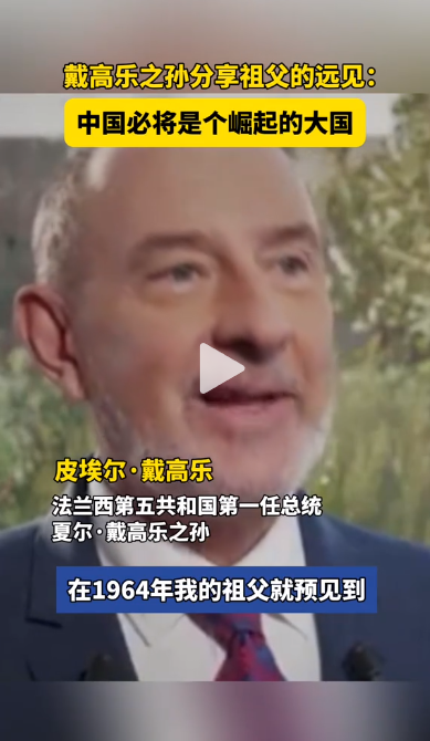 戴高樂之孫分享祖父對中國發展的遠見:必將崛起的大國