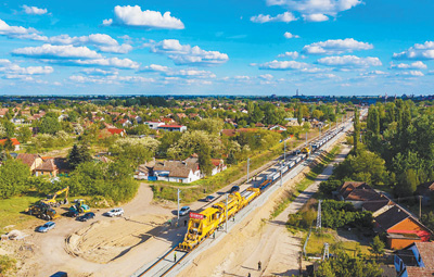 在匈塞鐵路項目現場,鋪軌機正在塞爾維亞邊境的蘇博蒂察進行鋪軌作業。