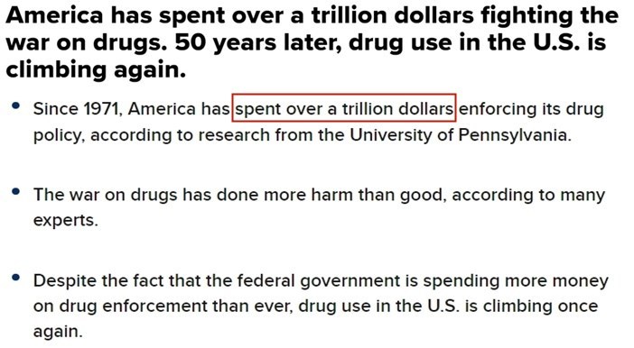 早在《聯邦管制物質法案》出臺后的上世紀70年代,美國政府就曾高調對毒品“宣戰”,至今已為“禁毒”花了上萬億美元。