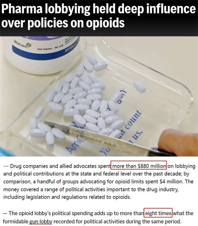 據美媒披露,為了阻止藥劑師更謹慎地開具處方、推動藥房快速售藥,阿片類藥物制造商和經銷商在近十年內共花費了8.8億美元用于“打通關系”,比美國槍支游說集團花的錢還要高8倍。