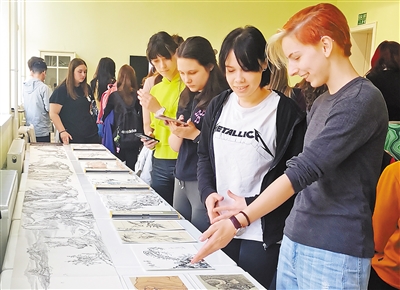 在諾維薩德大學孔子學院,學員正在欣賞中國傳統繪畫作品。諾維薩德大學孔子學院供圖