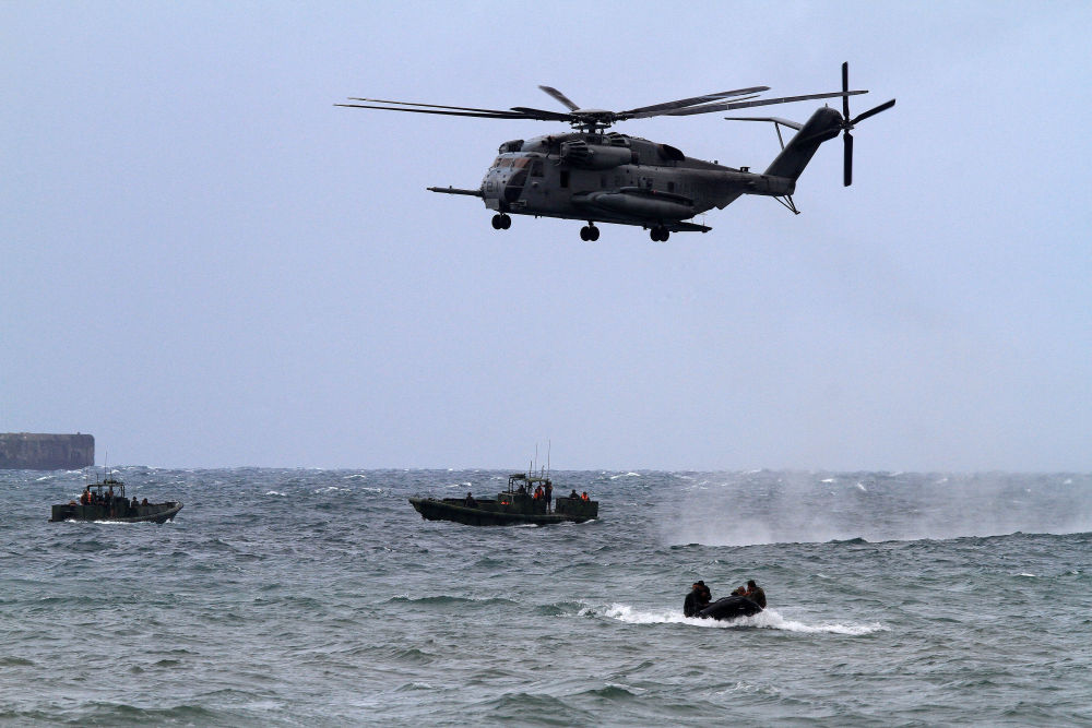 2013年9月20日,在菲律賓甲米地省,一架美軍CH-53E軍用直升機運載美國和菲律賓士兵參加演習。新華社發(fā)(魯埃勒·烏馬利攝)