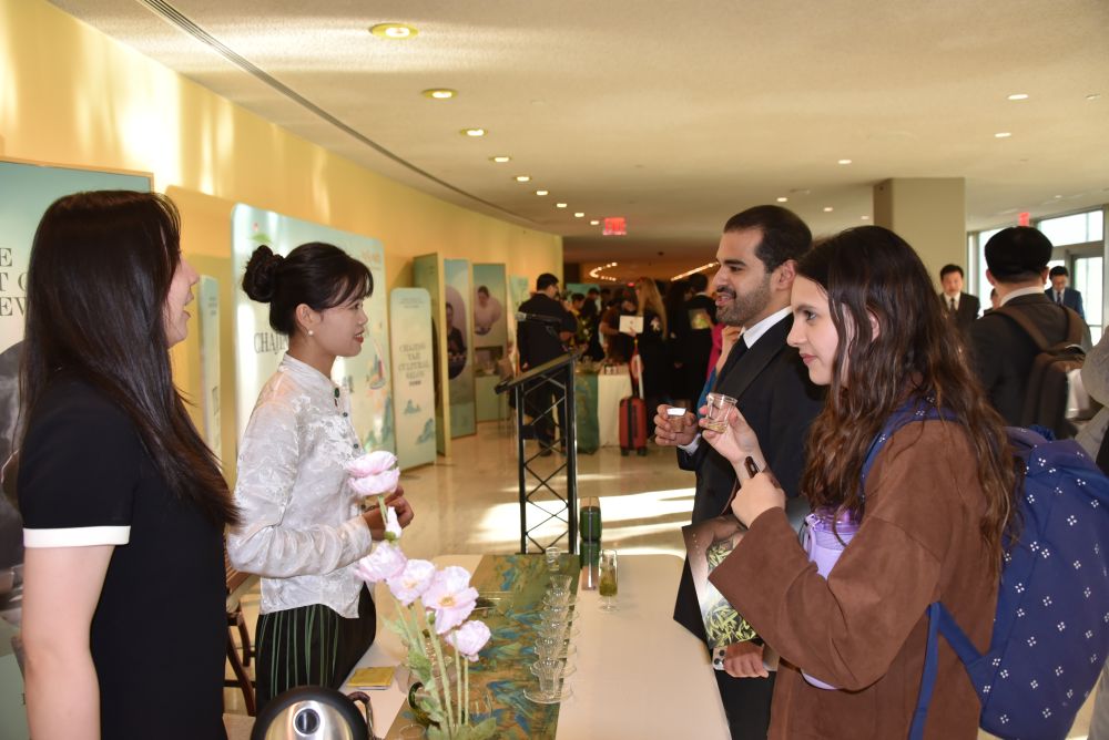 2024年5月21日,在位于紐約的聯合國總部,人們參加“茶和天下”國際茶日展示和慶?;顒?。新華社記者王建剛攝