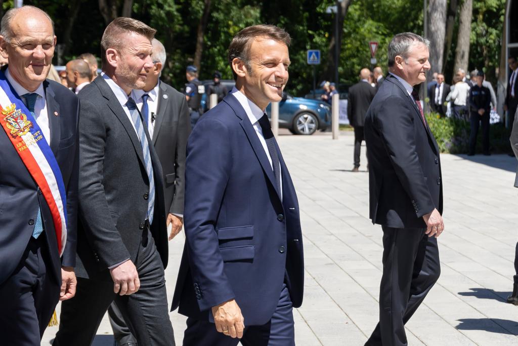 6月9日,在法國(guó)勒?qǐng)D凱市一處投票站外,法國(guó)總統(tǒng)馬克龍(右二)在參加歐洲議會(huì)選舉投票前與民眾交流。新華社發(fā)(弗蘭克·博阿姆攝)