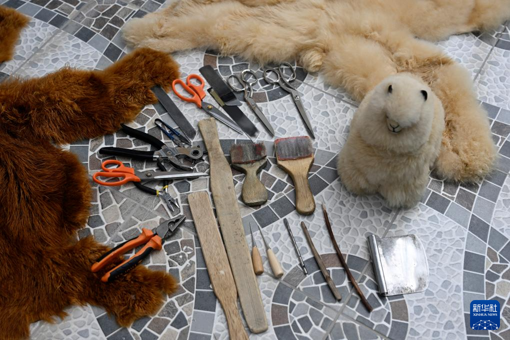 這是6月20日在秘魯阿雷基帕拍攝的羊駝皮毛和手工制作羊駝玩偶所使用的工具。新華社記者 李木子 攝