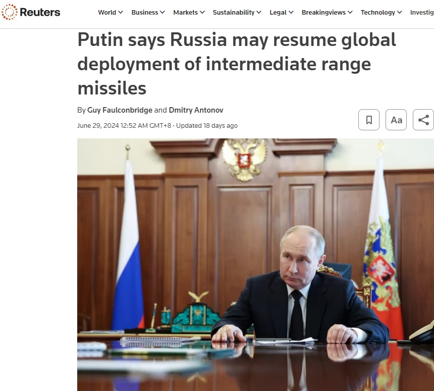 俄方不止一次發(fā)布消息說,美國的陸基中導系統(tǒng)已經(jīng)出現(xiàn)在歐洲的軍事訓練中。俄總統(tǒng)普京上月底曾警告,作為對美國敵對行動的回應,莫斯科可能會恢復陸基中導的生產(chǎn)和全球部署。