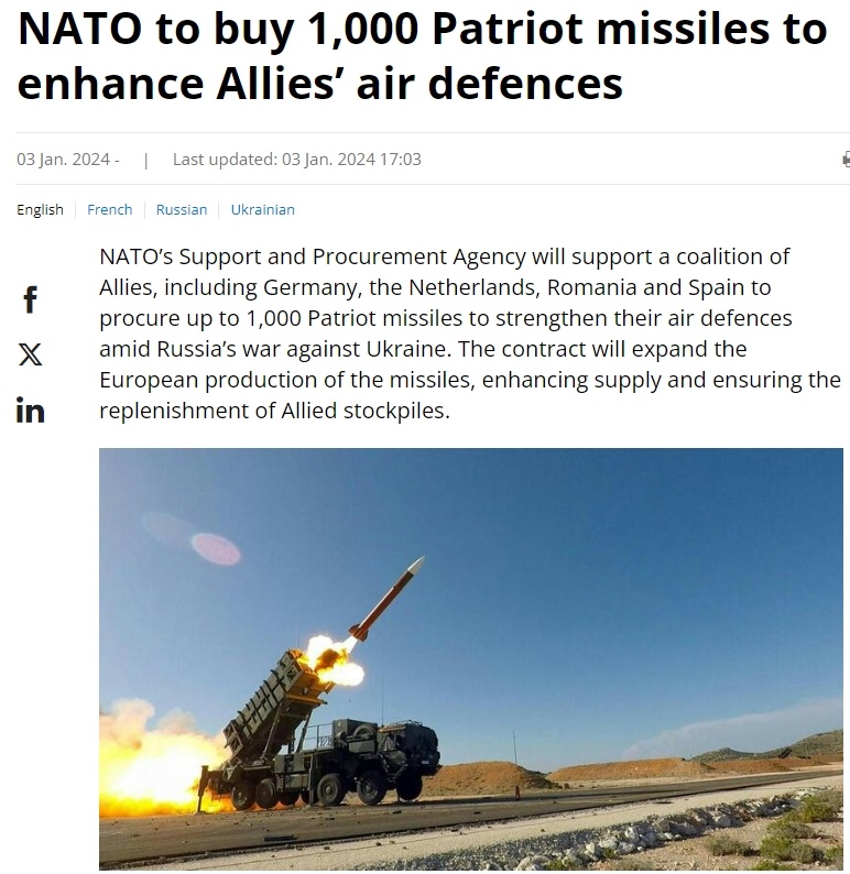 包括德國、荷蘭、羅馬尼亞和西班牙在內(nèi)的北約多個歐洲成員國今年1月決定聯(lián)合采購總價值55億美元的1000枚“愛國者”導彈,以幫助加強烏克蘭軍隊的防空能力,并補充北約各援烏國家的庫存。