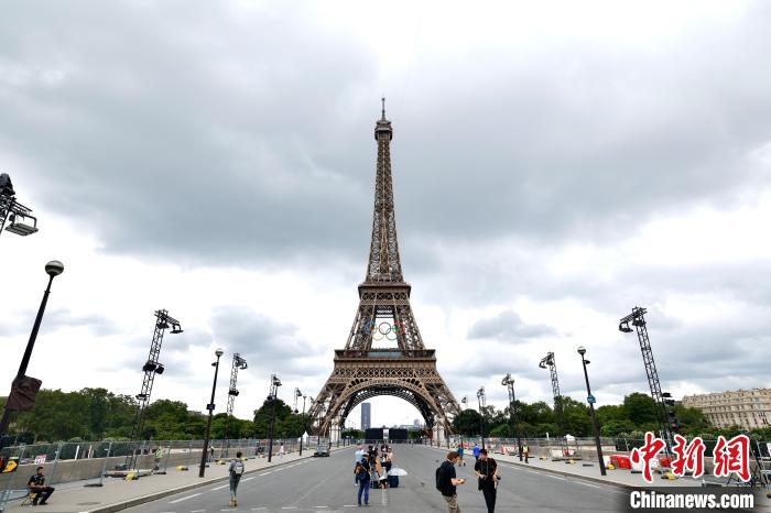 不過,當記者從鐵塔前的耶納橋向東行至亞歷山大三世橋,不到2公里的河面上已搭建數組舞臺裝置,大概將作為開幕式文藝表演的一部分,巨型屏幕也已豎起,便于沿岸觀眾收看。這些是沿途僅能看到的開幕式“劇透”。
