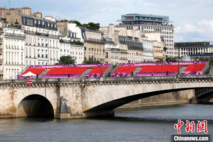 當地時間7月21日,巴黎奧運會開幕在即,圖為塞納河上的觀眾席?!≈行律缬浾?富田 攝