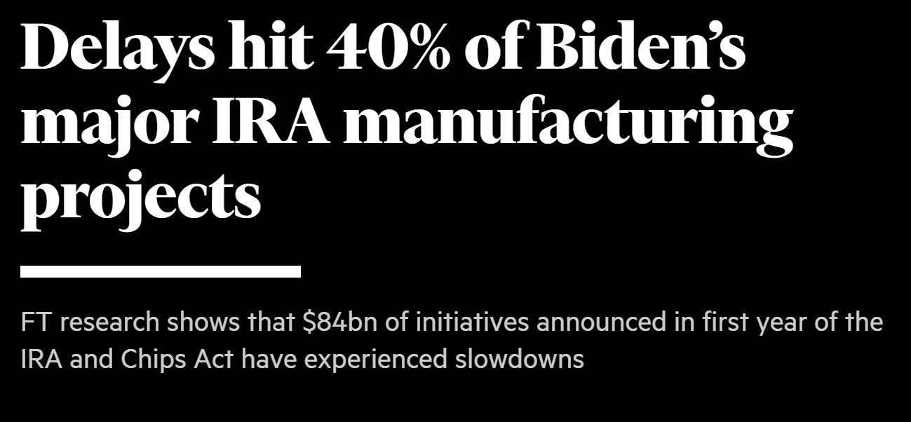 按照《金融時報》的說法,項目遲滯令輿論質疑拜登政府所篤定的工業轉型有望為美國帶來就業和經濟回報的說法。