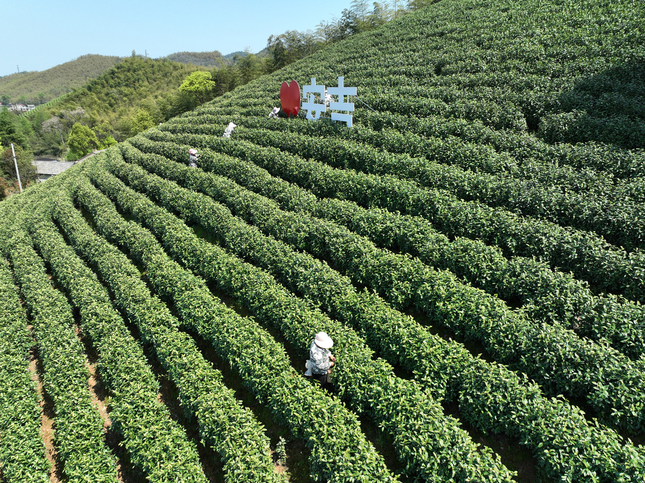 2024年4月9日,采茶工在安吉縣上墅鄉上墅村采摘白茶。圖源 新華社