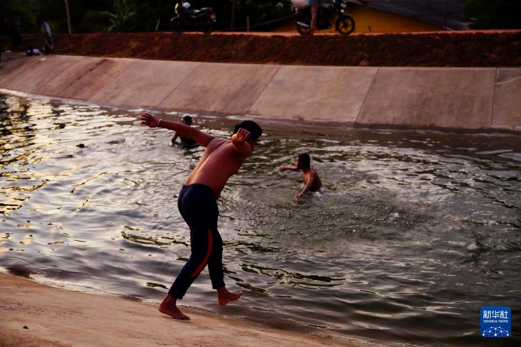 8月9日,當地民眾在17公里水渠中嬉戲。新華社記者 伍岳 攝