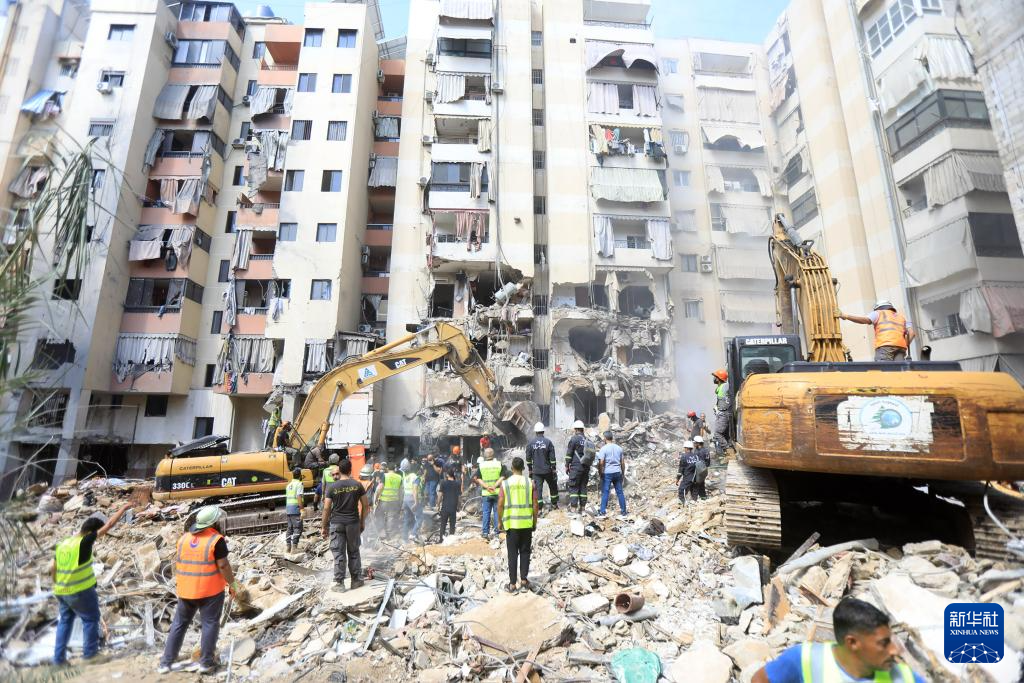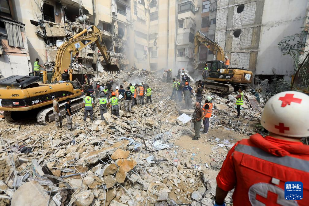9月21日,救援人員在黎巴嫩貝魯特的襲擊現場工作。新華社發(比拉爾·賈維希攝)
