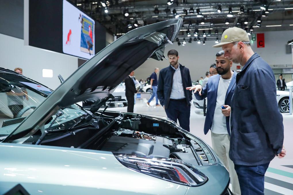 9月11日,人們在德國法蘭克福國際汽車零配件及售后服務展覽會上參觀吉利展臺。為期5天的法蘭克福國際汽車零配件及售后服務展覽會10日開幕。吉利、比亞迪等多家中國電動汽車品牌首次集體亮相,被德國媒體和業內人士視為本次展會一大看點。新華社記者張帆攝